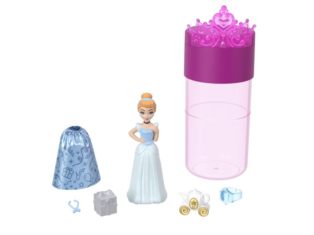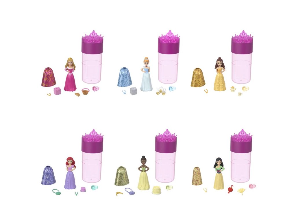 Disney Princess Color Reveal™ Královská malá panenka na večírku nabízí vzrušující zážitek při rozbalování a spoustu překvapení. Každá sada obsahuje panenku princeznu a spoustu herních doplňků. Odstraňte obal a odhalíte průhlednou tubu, ve které se nachází panenka Color Reveal™ potažená barevným potahem. Až přidání vody odhalí, která princezna vás překvapí. A tím překvapení nekončí... Otevřete tajemné sáčky a objevte sukýnku z měkkého materiálu, doplňky pro vyprávění příběhů a prsten nebo čelenku pro dítě. Panenky se prodávají samostatně dle aktuální nabídky. Barvy a vzhled výrobku se mohou lišit.Doplňkové parametry