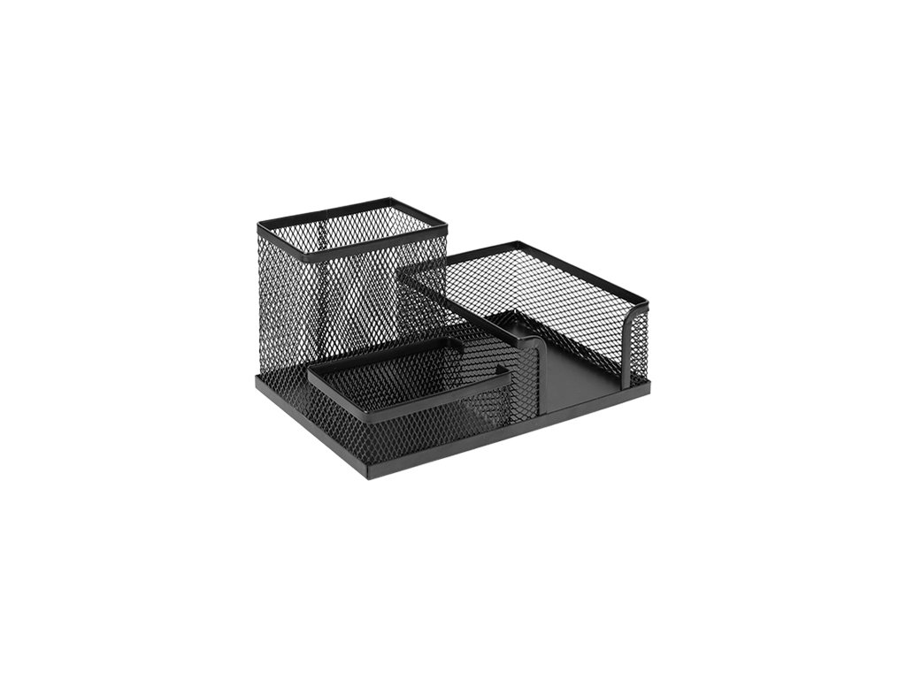 Drátěný organizér s třemi oddělenými částmi o rozměrech 186x95x102 mm bude skvělým pomocníkem pro organizaci Vašeho pracovního stolu. Obsahuje prostor určený pro spony, špalík - bloček a pera. Lze ukládat i jiné drobné kancelářské pomůcky. Dodáván je v čeDoplňkové parametry