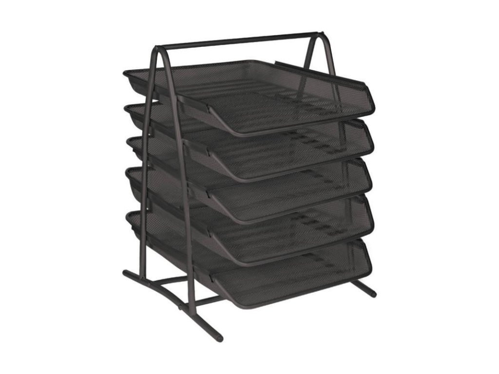 Drátěný stojan s 5 zásuvkami pro dokumenty formátu A4.