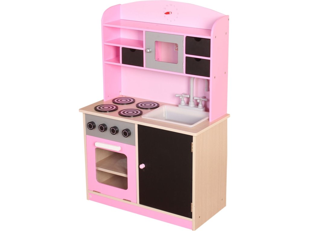 Dřevěná kuchyňka 60 x 30 x 90 cmV moderní době se již nehraje na holčičí a klučičí hračky. I chlapci mohou zkoušet být kuchařem. Dětská kuchyňka Wiky představuje zábavný způsob, jak děti mohou napodobovat dospělé při vaření, aniž by se zranily. Během hraní kluci a holky navíc rozvíjejí svou jemnou motoriku a paměť. Kvalitní dřevěná dětská kuchyňka je stabilní a schopná odolávat i hrubšímu zacházení, takže se jen tak nezničí. Klíčové přednosti produktu Dřevěná kuchyňka 60 x 30 x 90 cm- Dětská kuchyňka Wiky je ideální pro děti, které se zajímají o vaření- Podporuje rozvoj jemné motoriky, přemýšlení a kreativitu- K její výrobě posloužil kvalitní materiál, jako je dřevo- Otevíratelná dvířka- Pro design dětské kuchyňky je typická růžová, bílá a černá barva- Rozměry dětské kuchyňky Wiky dosahují 90 × 60 × 30 cm (vך×h)- Je vhodná pro děti od 3 let- Pro vaše ratolesti bude dlouho oblíbená, protože ji můžete doplnit o nové příslušenství. Součást balení:mikrovlnka, nádobí a troubaDoplňkové parametry
