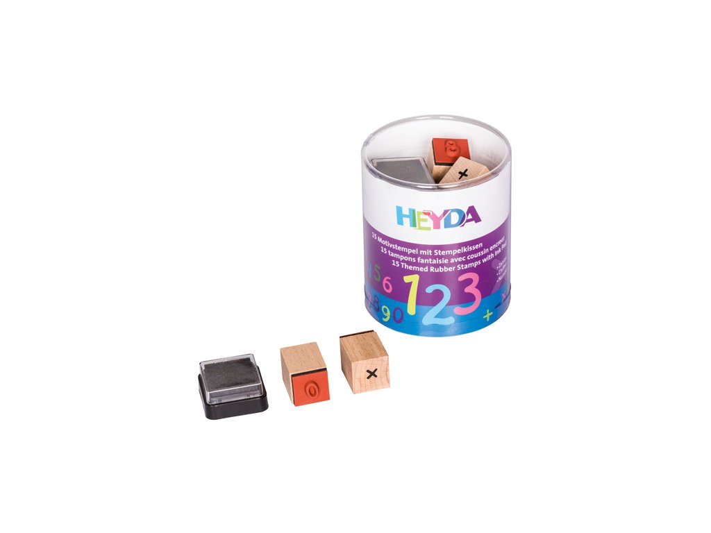 Dřevěná razítka v boxu - 15ks Matematika + poduška