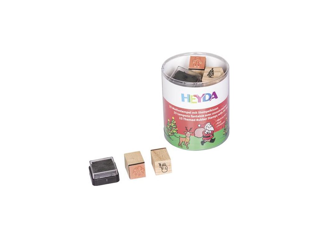 Dřevěná razítka v boxu - 15ks Vánoce + poduška