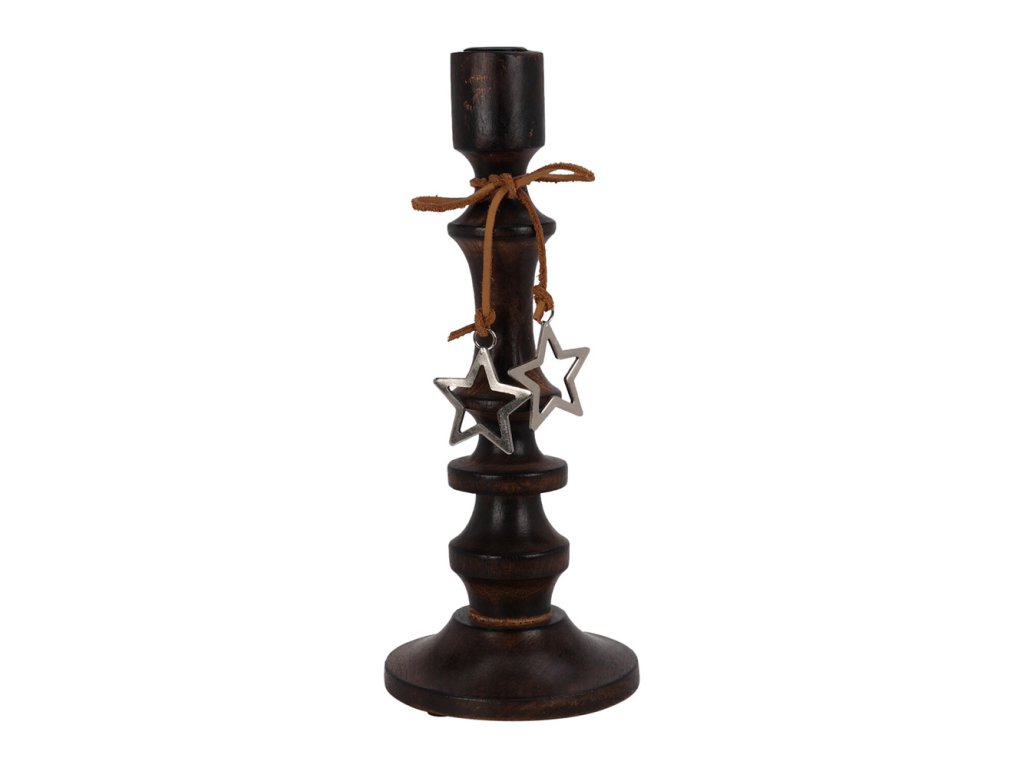 Dřevěný svícen 30 cm s hvězdou na provázku, černý