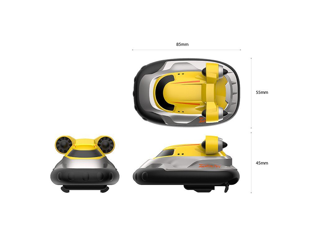 Moderní vznášedlo na dálkové ovládání, která jezdí všemi směry. Pomocí tlačítka pro zrychlení, dokáže na pár vteřin vyvinout větší rychlost. Senzor na vodu zaručí spuštění pouze při ponoření do vody. Dosah ovladače 10-15 m. Dobíjení na USB kabel. Doba dobíjení 25-30 minut. Doba jízdy 8-12 minut.Doplňkové parametry