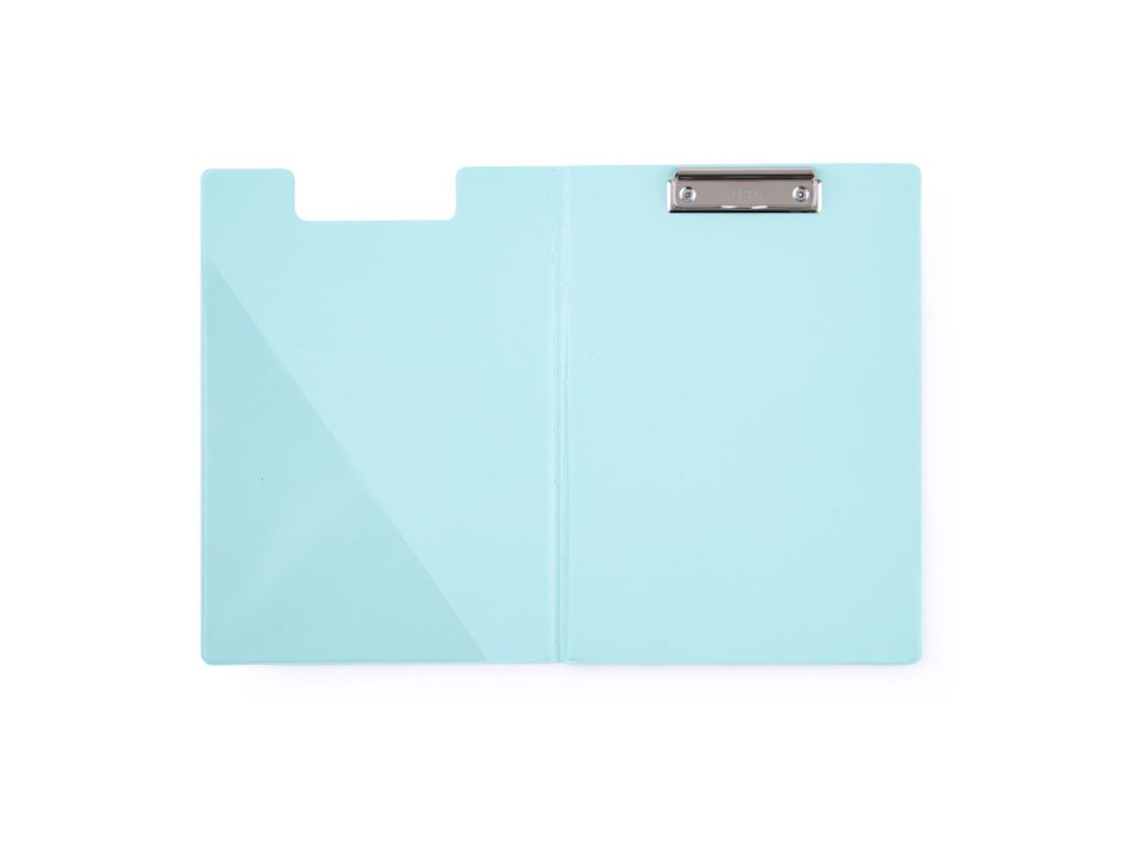 Uzavíratelná psací podložka s kovovým klipem, vyrobena z extra pevné lepenky. Vnitřní průhledná kapsa. Moderní pastelové barvy.Doplňkové parametry