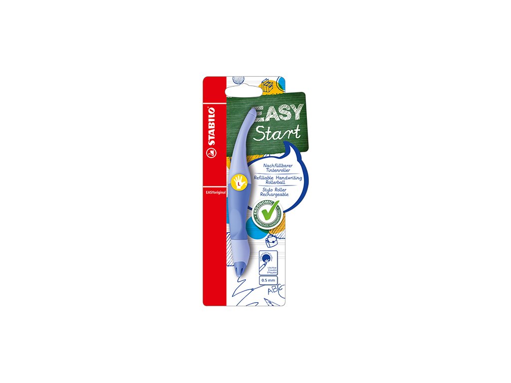 STABILO EASYoriginal Pastel prináša trend pastelových farieb do školských tried. Ergonomický roller pre začiatočníkov a študentov od 6 rokov. Jedná sa o prvý roller v ergonomickom tvare, vo variante zvlášť pre ľavákov a pravákov, ktorý bol navrhnutý špeciálne pre deti, ktoré sa učia písať. Ergonomická nekĺzavá úchopová zóna podporuje uvoľnené držanie a zabraňuje únave svalstva ruky a bolesti pri písaní. Vďaka guľôčke v náplni roller ľahko kĺže po papieri. neškriabe, nerobí machule a s každou novou náplňou dostane pero nový hrot. Modrý zmizíkovateľný atrament.Doplňkové parametry