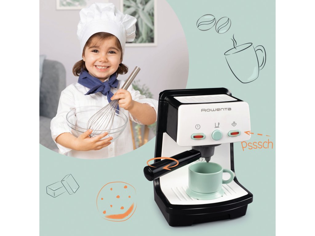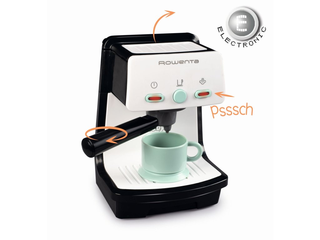 Věrná replika moderního stroje na espresso dodává espresso ve správném stylu. Realistické funkce, jako je podsvícený spínač a různé zvukové efekty, zajišťují skutečný baristický vkus. Portafiltr lze vyjmout jako u skutečného kávovaru na espresso. Součástí je šálek na espresso. Rozměry (DxŠxV): 10,5 x 10,4 x 18 cm.Doplňkové parametry