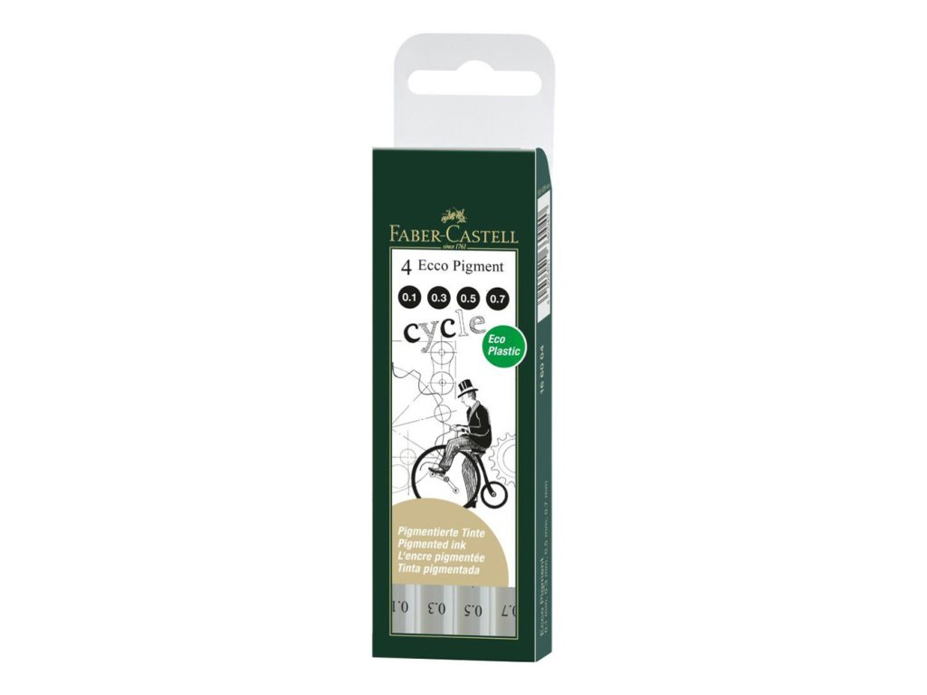 Faber-Castell Ecco Pigment technické pero - sada 4 ks (0,1-0,3-0,5-0,7 mm)