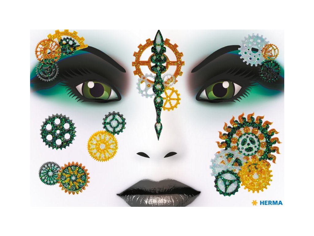 Návrhy samolepek na obličej. Pro různé příležitosti: například karneval, narozeniny nebo Halloween. Ref. č.: 15439Motiv: Steampunk MarieVerze: Třpytivá fólieMateriál: FólieAdhezivní vlastnosti: odnímatelnýEan: 4008705154390Doplňkové parametry