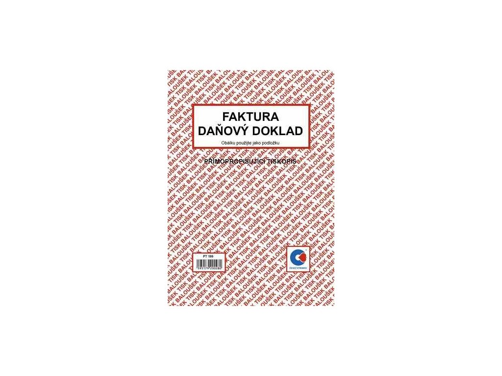Faktura - daňový doklad. Tiskopis je vyroben ze samopropisujícího papíru. Tisk vnitřních listů je černou barvou.Doplňkové parametry