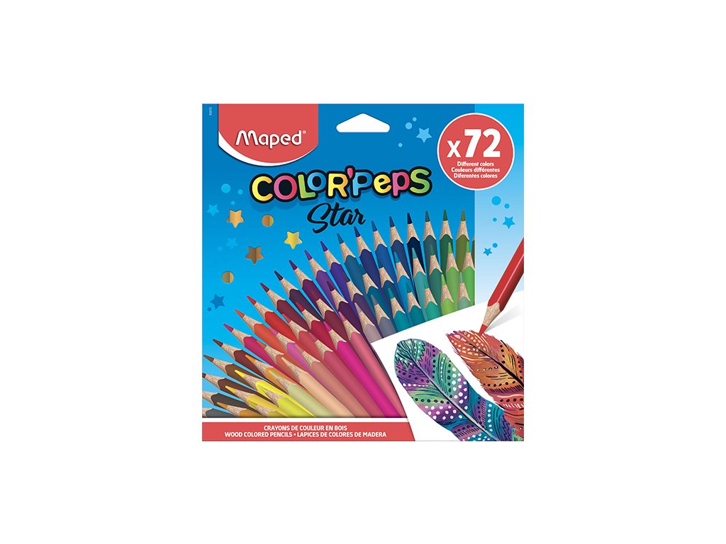 Souprava 72 kusů pastelek s veselým designem. Ergonomické pastelky Maped Color'Peps mají trojhranné tělo, měkkou odolnou tuhu a jasné barvy.Doplňkové parametry