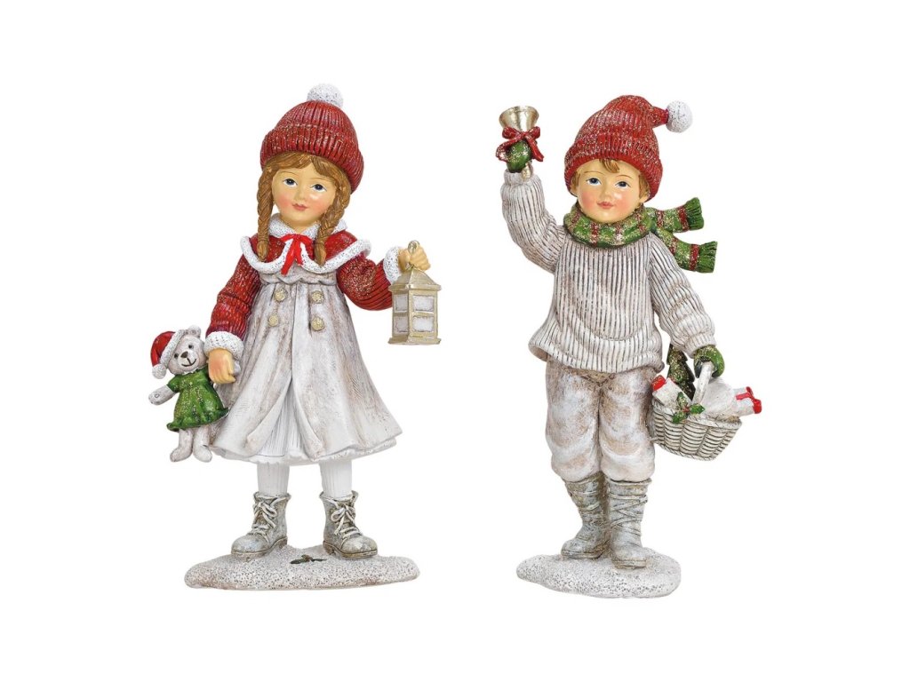 Figurka dívky/chlapce v zimních šatech 12 cm (mix 2 vzorů /cena za 1 ks)
