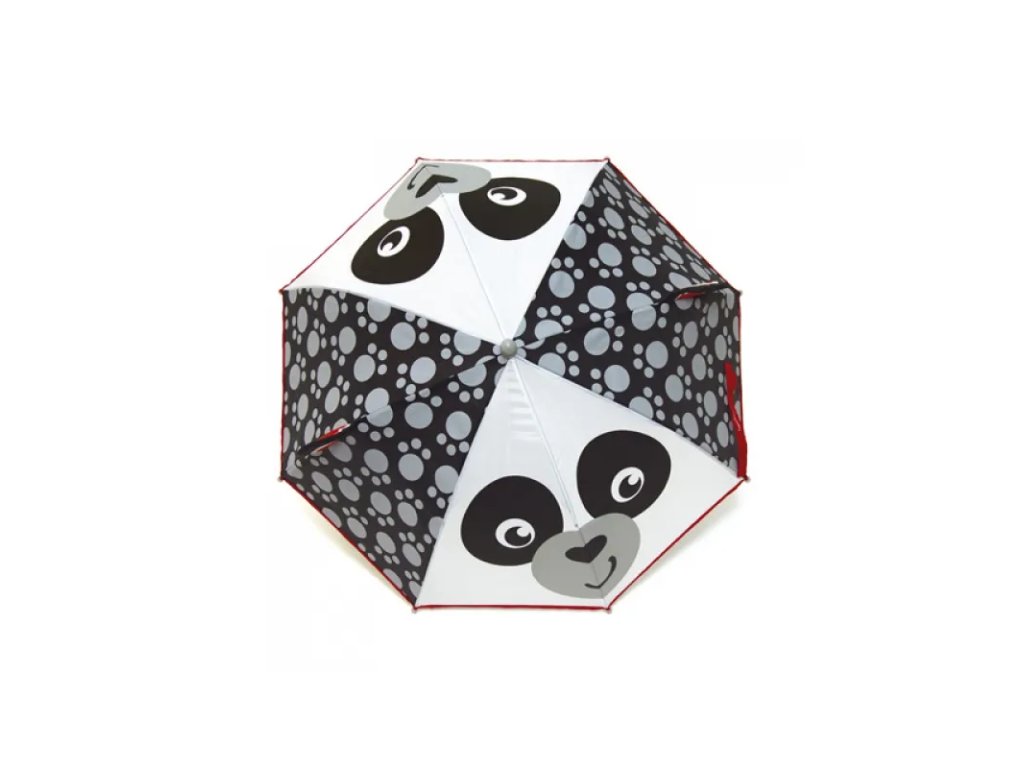 Veselý deštník pro nejmenší s manuálním mechanismem a veselým potiskem PANDA. Deštník má kvalitní a pružnou konstrukci, jednoduché a bezpečné otevírání, zajištěno proti přivření prštěků.• manuální otevírání, kovová konstrukce