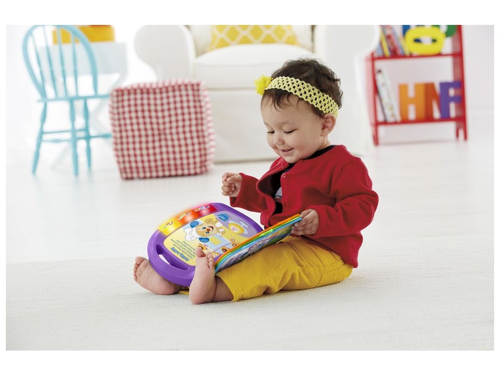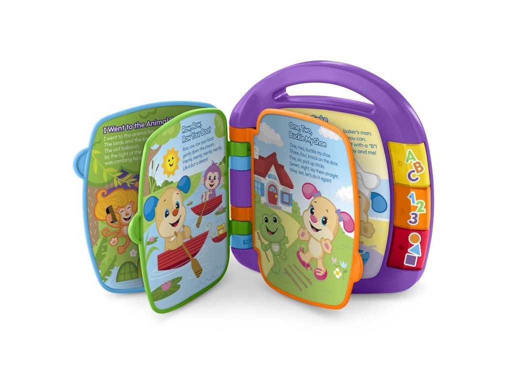 Otevřete svému dítěti svět zábavy a učení s hrající knížkou Učíme se říkanky z řady Směj se a Poznávej! od Fisher-Price®! Pouhým otočením stránky spustíte oblíbené dětské písničky a zároveň si můžete prohlížet barevné obrázky pejska a jeho sestřičky. Zatímco vy s vaším malým tanečníkem dobýváte parket v rytmu skvělé hudby, on se zároveň učí písmenka, počítání, první slůvka, čísla, tvary a další důležité věci. Když děti stisknou svítící tlačítka ABC a 123, uslyší písmena a čísla odpovídající příslušné stránce. Díky tomu si čtení zamilují! Stisknutím svítícího tlačítka „Tvary a barvy“ děti spustí krátké věty, které jim pomůžou naučit se všechny různé barvy a tvary. Stránky, které se snadno otáčejí, pomůžou dětem rozvíjet jemnou motoriku.Doplňkové parametry
