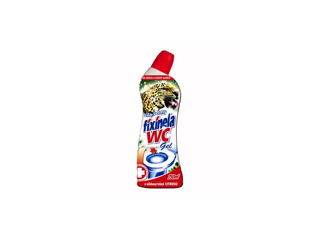 Fixinela WC gel Citrus šelma. Přípravek prvotřídní kvality na čištění sanitární keramiky - čistič WC odstraňuje vodní kámen a rez v každé toaletě, působí dlouho i na svislém povrchu a pod vodou, zabíjí bakterie, odstraňuje rez a vodní kámen, zažranou špínu.Doplňkové parametry