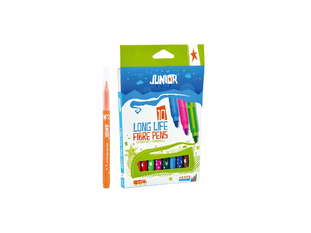 Trojhranné fixy barevné s kuželovou špičkou, ideální pro děti. Vymývatelné z textilu. Inkoust na bázi vody, který umožňuje lehké nanášení a míchání jasných barev.Doplňkové parametry