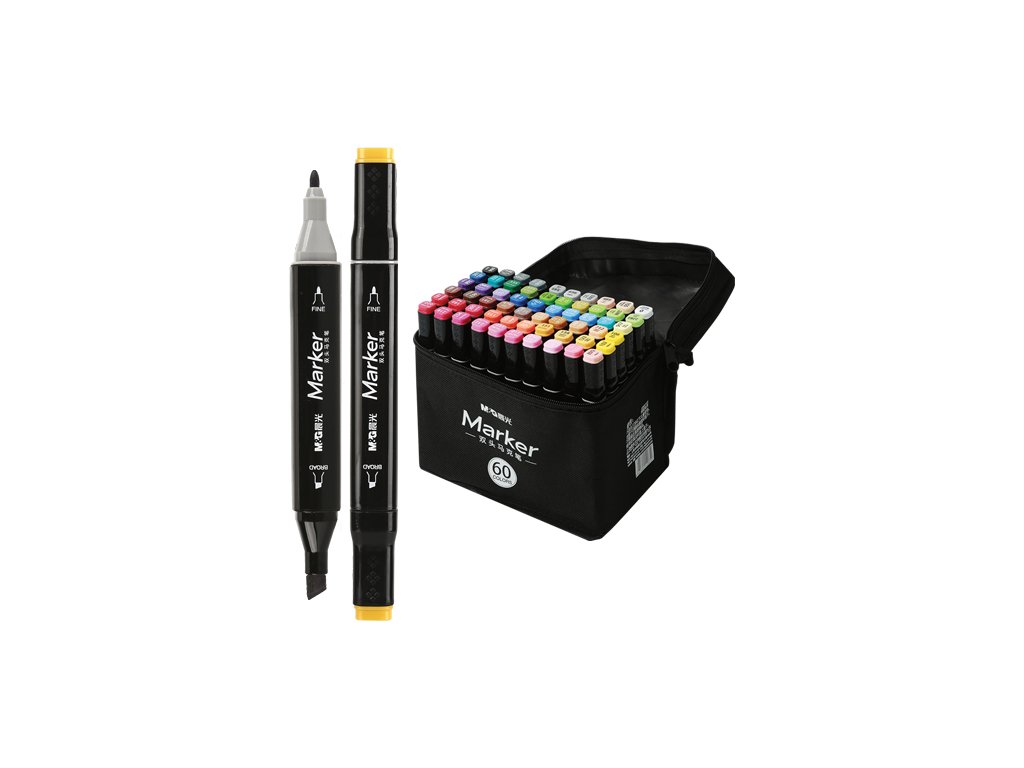 Fixy M&G Marker oboustranné, sada 60 ks v tašce