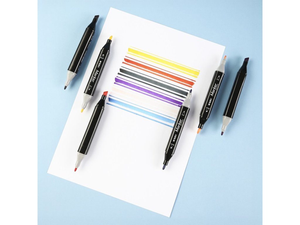 Oboustranné čtyřhranné kreativní popisovače, jejichž hroty umožňují snadné barvení, kreslení, skicování a stínování. Kulatý hrot – šířka stopy 1 mm (pro detailní zvýraznění řádků). Klínový hrot – šířka stopy 7 mm (pro rychlé vybarvení). Sada obsahuje 80 ks popisovačů v praktickém textilním pouzdře se zipem. Vysoce pigmentovaný, dlouhotrvající a rychleschnoucí inkoust na alkohoolové bázi, odolný vůči rozmazání a vyblednutí.Doplňkové parametry