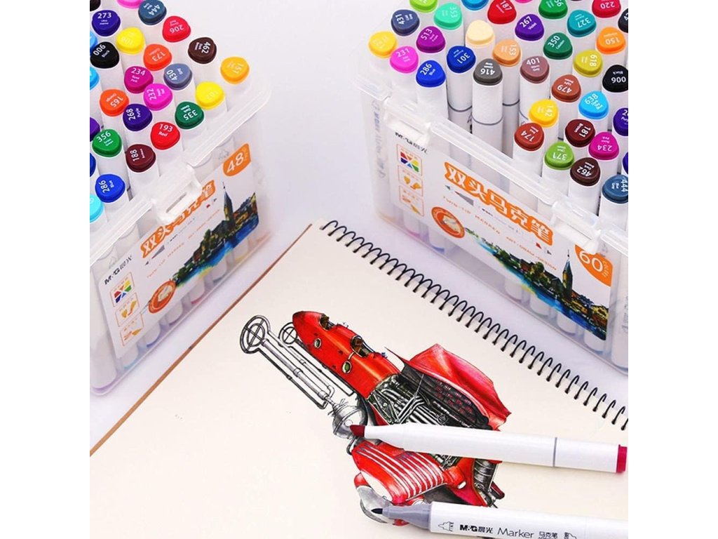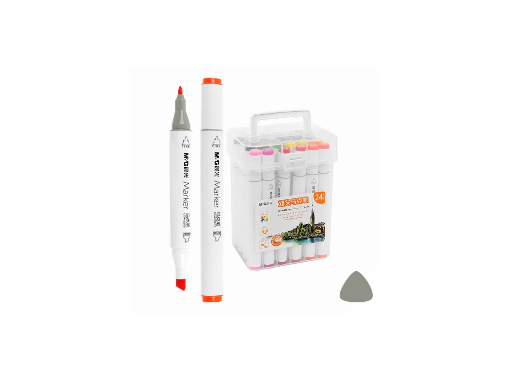 Oboustranné trojhrané kreativní popisovače, jejichž hroty umožňují jednoduché barvení, kreslení, skicování a stínování. Štětečkový hrot - šíře stopy 2 mm (pro detailní zvýraznění řádků). Klínový hrot - šíře stopy 7 mm (pro rychlé vybarvení). Sada obsahuje 24 ks popisovačů v praktickém plastovém pouzdře. Vysoce pigmentovaný, dlouhotrvající a rychleschnoucí inkoust na alkohoolovej bázi, odolný proti rozmazání a vyblednutí.Doplňkové parametry