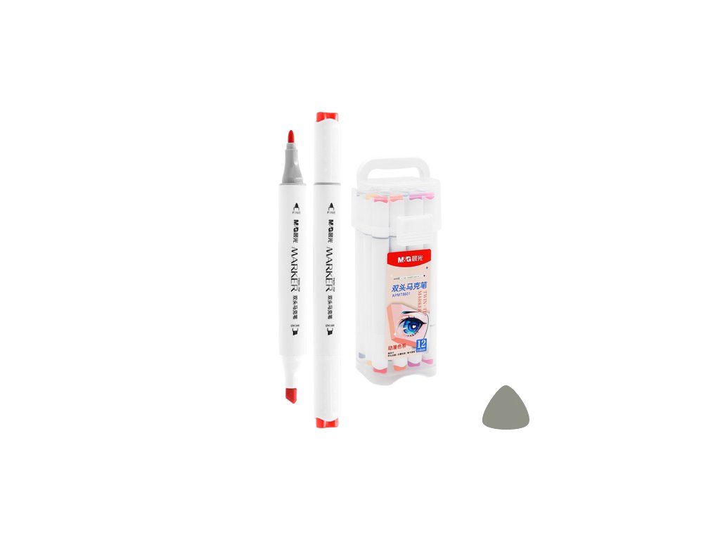 Oboustranné tříhrané kreativní popisovače, jejichž hroty umožňují snadné barvení, kreslení, skicování a stínování. Kulatý hrot – šířka stopy 1 mm (pro detailní zvýraznění řádků). Klínový hrot – šířka stopy 5 mm (pro rychlé vybarvení). Sada obsahuje 12 ks popisovačů v praktickém plastovém pouzdře. Vysoce pigmentovaný, dlouhotrvající a rychleschnoucí inkoust na alkohoolové bázi, odolný vůči rozmazání a vyblednutí.Doplňkové parametry