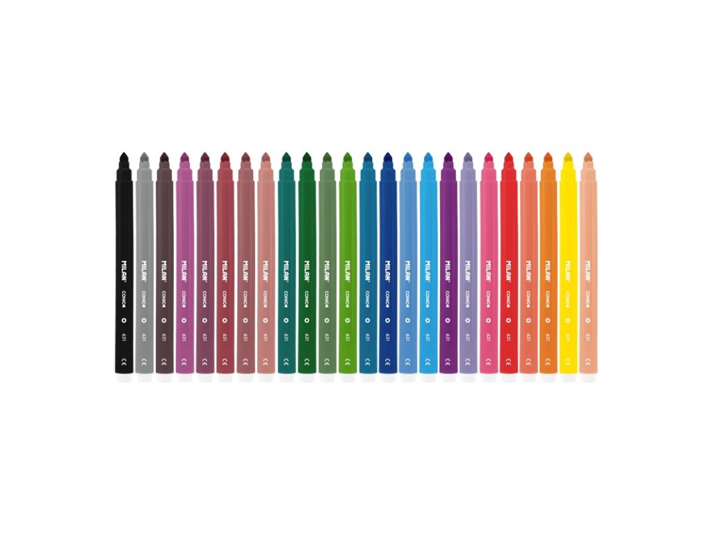 Fixy MILAN s kónickým hrotem (o5mm) se silnou a odolnou špičkou. Špička může být použita na jemné linky (0,75mm) nebo silnější linky až 3 mm, hroty ideální pro menší kresby a větší díla, jako jsou nástěnné plakáty. Inkoust na bázi vody produkuje světlé baDoplňkové parametry
