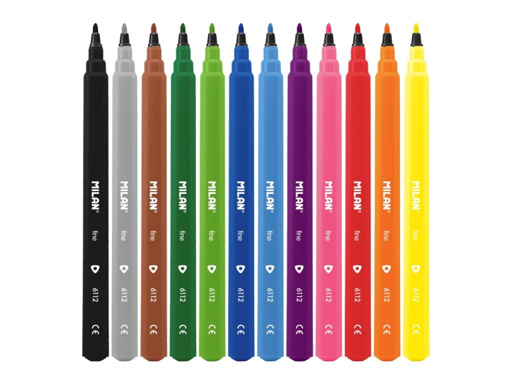 Fixy MILAN trojhranné s tenkým hrotem - sada 12 barev