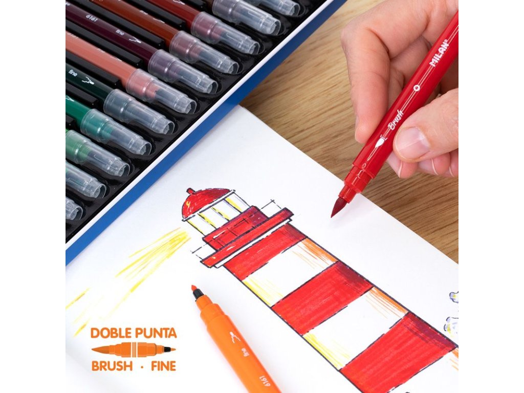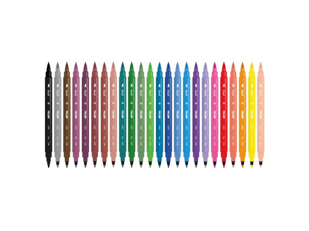 Plechová krabička obsahuje 24 barevných fixů s dvojitým hrotem.