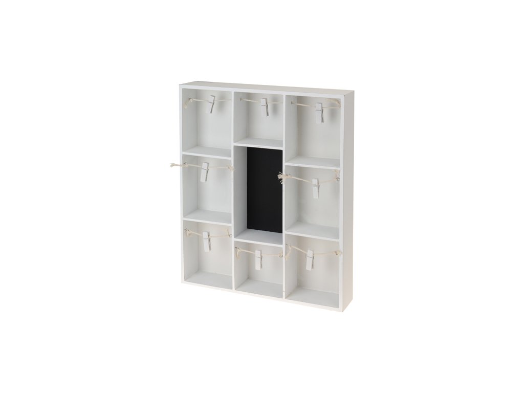 Veľký a pevný drevený fotorámik so štipcami na povrázku na 8 fotografií.