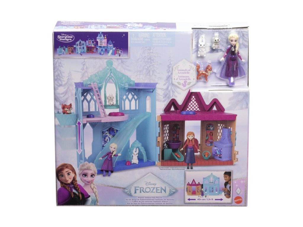 Svět Disney Ledové království se rozrůstá o nový roztomilý set pro péči o zvířátka! Po otevření se set promění v útulné místo, kde si zvířecí kamarádi Elsy mohou hrát, jíst i odpočívat. S malou pohyblivou panenkou Elsy, třemi zvířecími figurkami a osmi tematickými doplňky si děti mohou přehrát spoustu krásných příběhů plných péče a přátelství. A co víc – set lze propojit s dalšími herními sety z řady Storytime Stackers (prodávají se samostatně) a vytvořit si tak vlastní kouzelný svět Arendelle.Doplňkové parametry