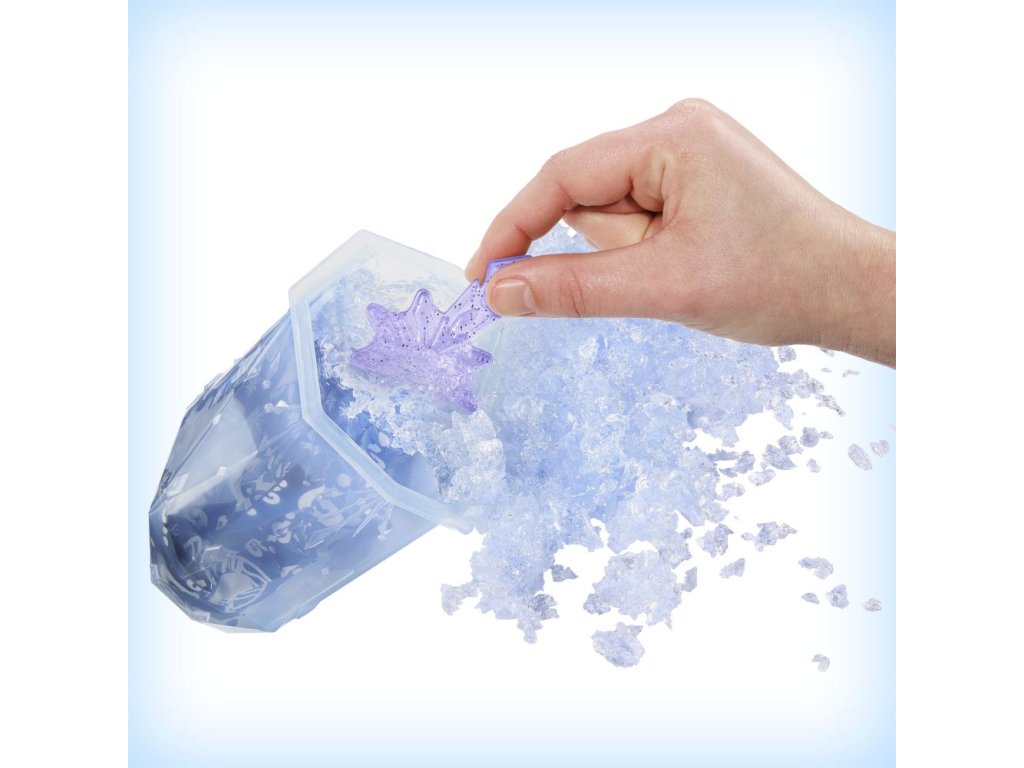 Tato kolekce malých panenek s překvapeními nabízí inovativní zážitek při rozbalování díky Squishy Ice™ - ledově modré želé směsi. Děti se pomocí přiložené lopatky prohrabou nádobkou se Squishy Ice™ a objeví poklady uvnitř: malou panenku Annu nebo Elsu, postavičku kamaráda a 4 hrací prvky.Doplňkové parametry