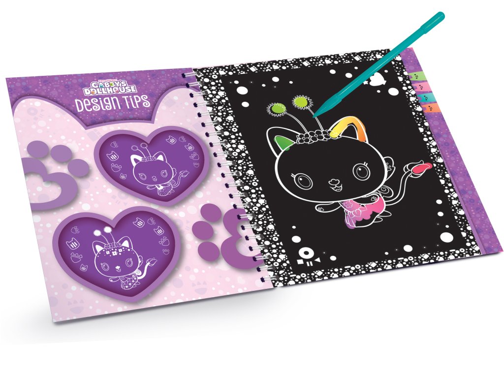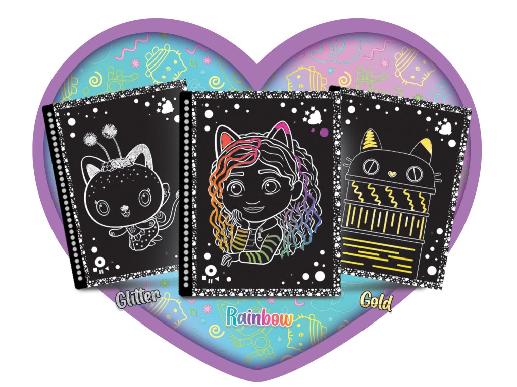 Objevte kouzlo barev s Gabby's scratch odhalením. Bavte se při vybarvování a zdobení všech obrázků seškrábáním černého povrchu a objevováním spousty jiskřivých a barevných efektů.Doplňkové parametry