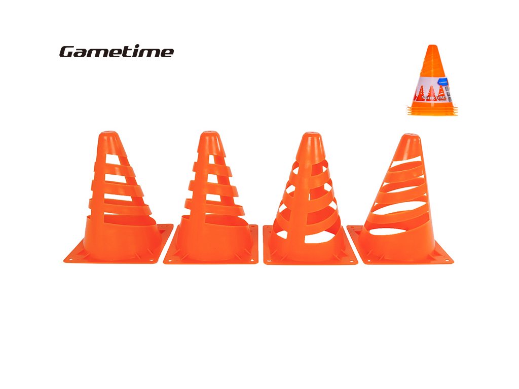 Sada oranžových sportovních kuželů s otvory v licenci Gametime. Rozměr: 13 x 13 x 18 cm Balení obsahuje: 4 ksDoplňkové parametry