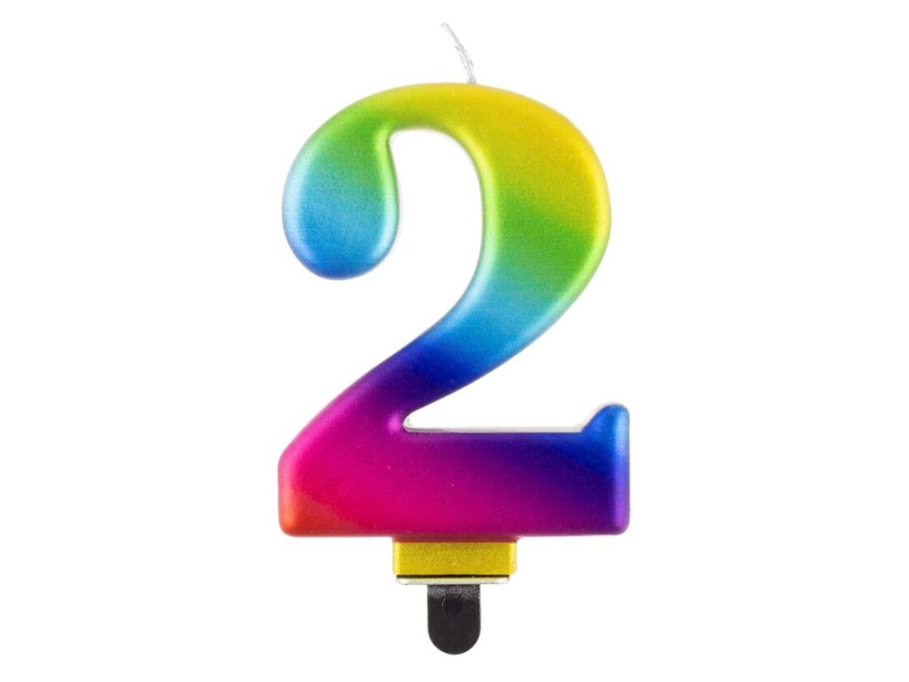 Duhová dortová svíčka č. 2 s metalickým leskem.Doplňkové parametry