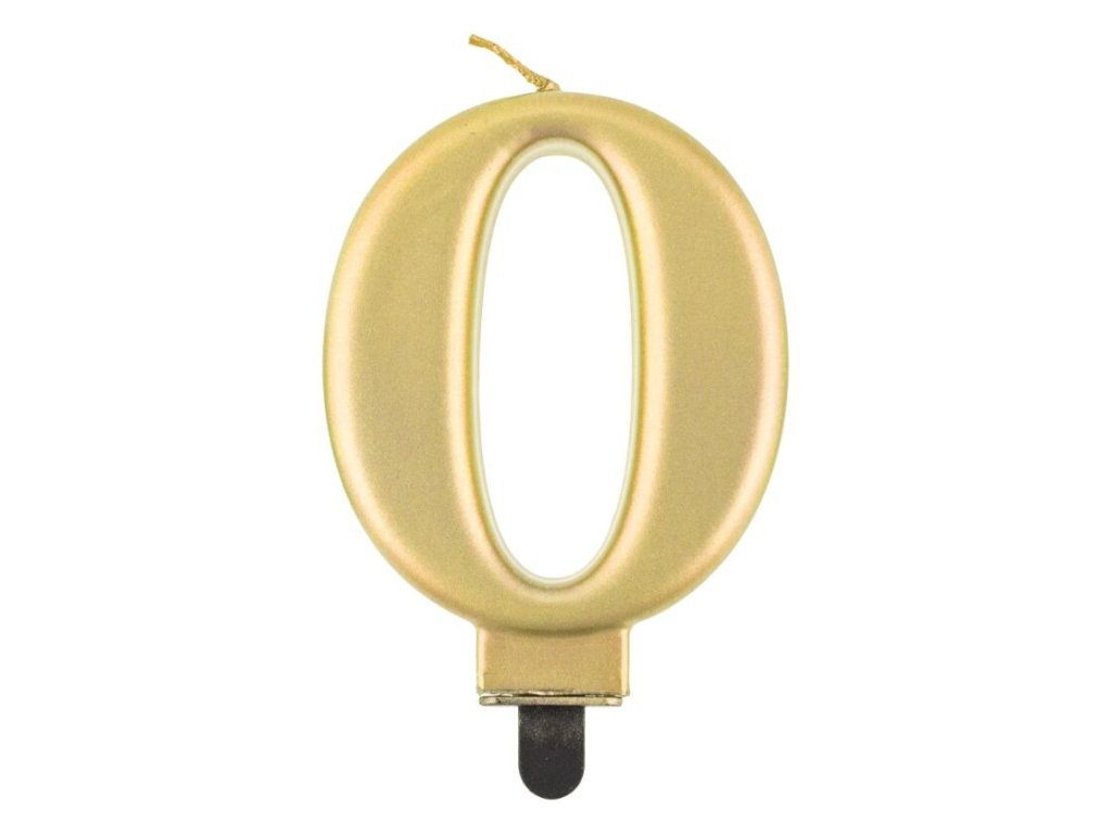 Zlatá dortová svíčka č. 0 s metalickým leskem. Provedení: č. 0Doplňkové parametry