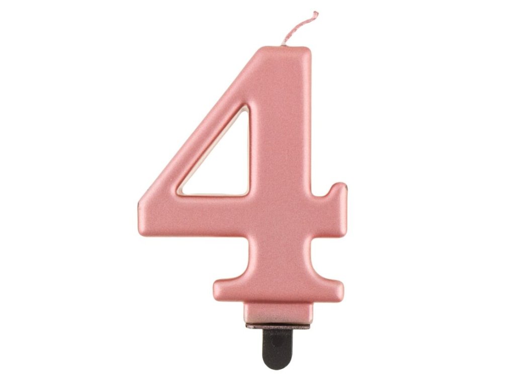 Starorůžová dortová svíčka č. 4 s metalickým leskem.Doplňkové parametry