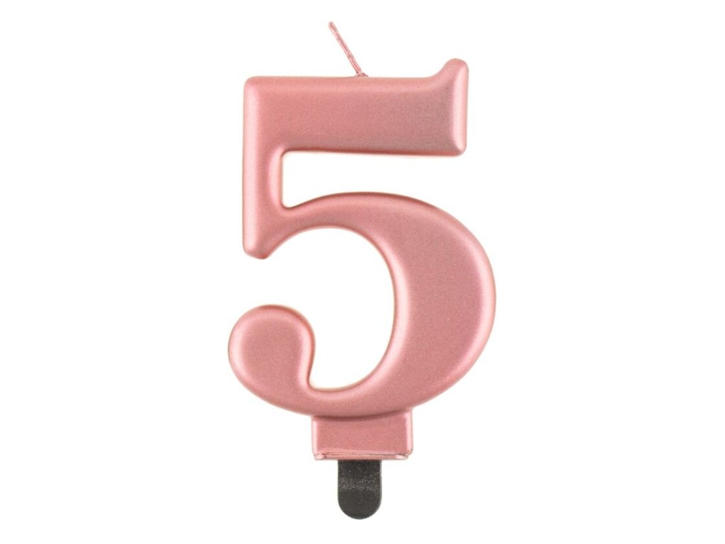 Starorůžová dortová svíčka č. 5 s metalickým leskem.Doplňkové parametry