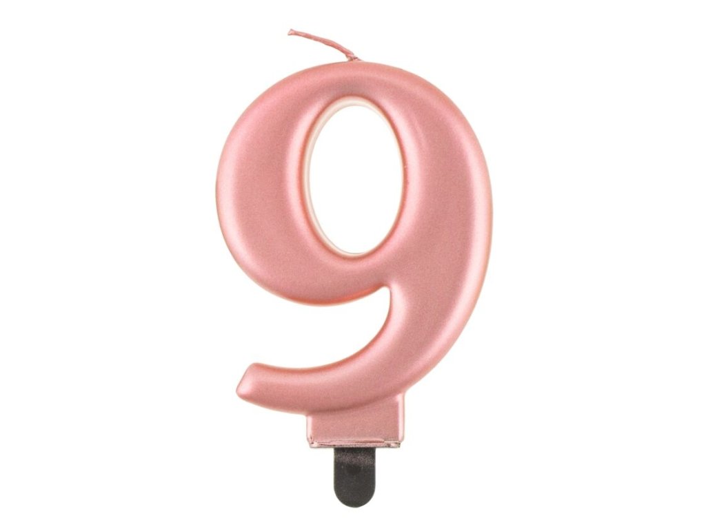 Starorůžová dortová svíčka č. 9 s metalickým leskem.Doplňkové parametry