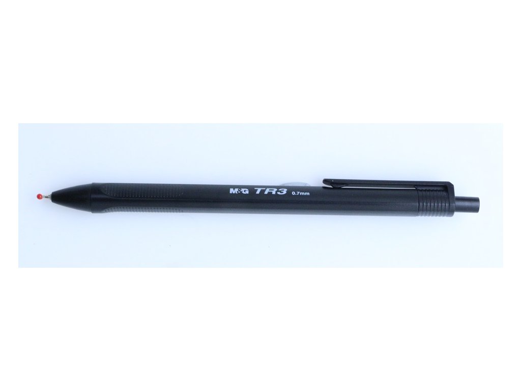 Kuličkové pero TR3 Plus semi černé plastové kuličkové pero stiskací mechanismus nový typ inkoustu semi-gel pro příjemné psaní síla hrotu 0,7 mm černý inkoust cena za 1ksDoplňkové parametry