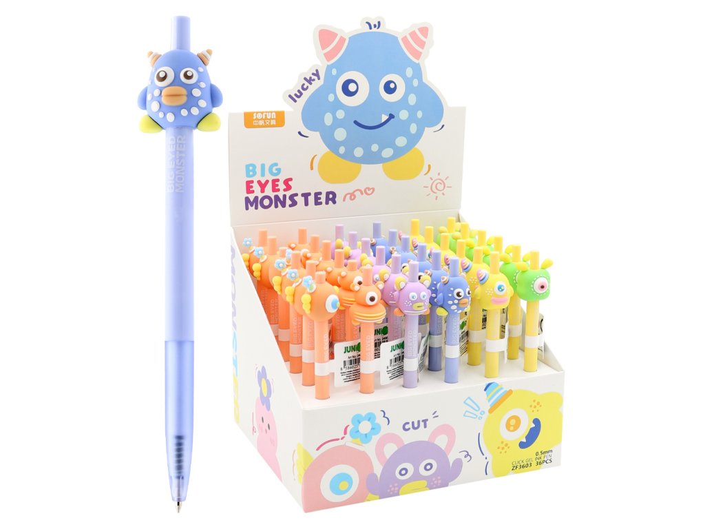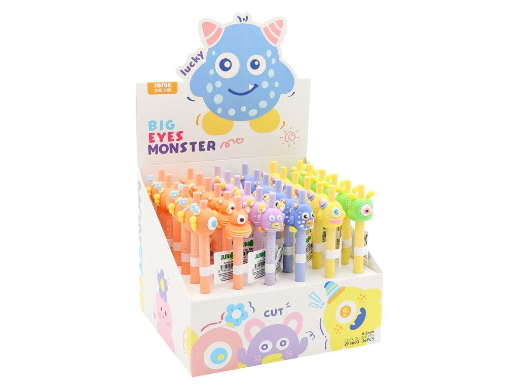 Gelové pero JUNIOR Big Eyes Monster 0,5 mm, modrá náplň (mix barev)