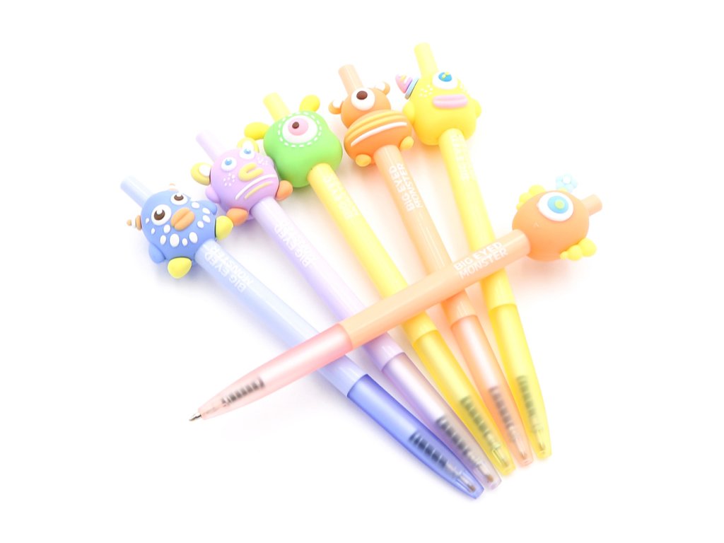 Gélové pero s pryžovou příšerkou s velkým okem/očima (4 barvy /6 designů).