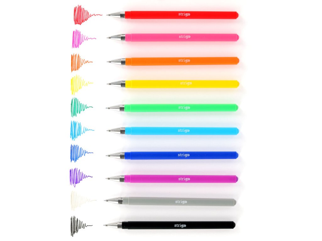 Gelové pero Strigo v 10 základních barvách.Doplňkové parametry
