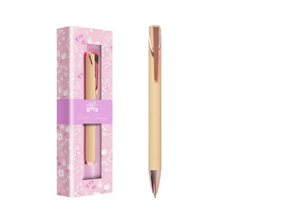 Kouzlo elegance v každém tahu! V jednoduchosti je krása! Toto nádherné dárkové pero Gifty – pink z řady Little Things v matném krémovém odstínu s jemnými kovovými detaily v barvě rose gold přináší nejen pohodlné psaní, ale i nádech luxusu. Elegantní balení v romanticky růžové krabičce s květinovým motivem podtrhuje jeho jemnost. Díky hladkému a pohodlnému úchopu se s ním píše lehce a bez námahy, ať už si zapisujete důležité myšlenky, tvoříte umělecké skici nebo podepisujete významné dokumenty. Dopřejte si kousek luxusu!Doplňkové parametry