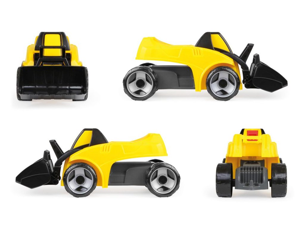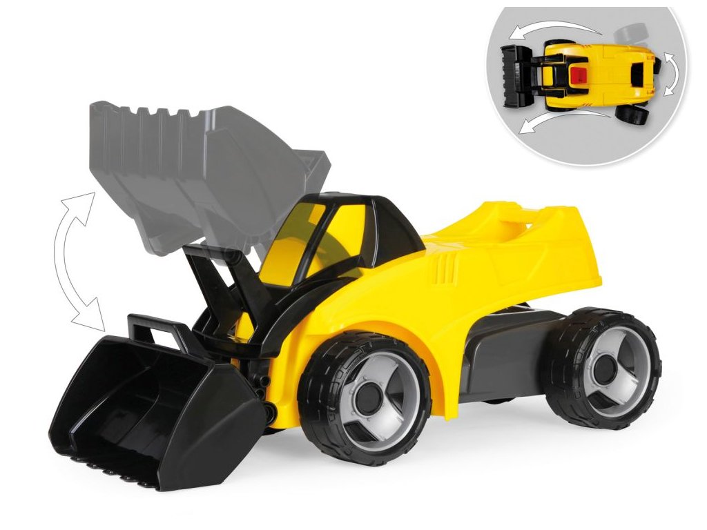 Robustní nakladač s velkou sedací plochou, 6mm pozinkované ocelové osy. Snadné otáčení díky kloubovému řízení. Moderní, detailní design. Velká lopata, ergonomicky tvarované rukojeti.Doplňkové parametry
