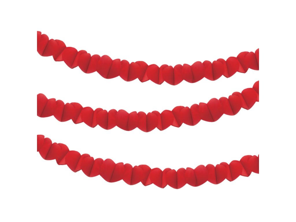 Girlanda papírová 2 m - červená srdce (2 ks v balení)
