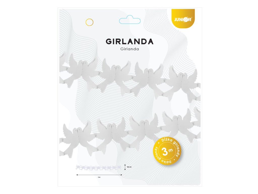 Girlanda papírová 3 m - bílé holubice