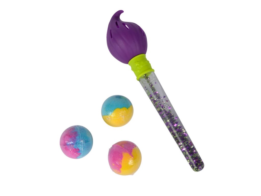 Kouzelný štěteček do vany a 3 vodní šumivé barevné bomby v balení. Šumivé koule ze vkládají do štetečku a se štetečkem lze potom malovat ve vodě.Doplňkové parametry