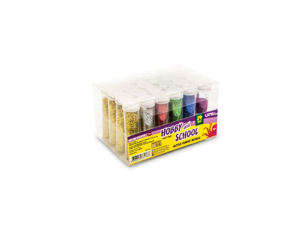Glitrový prášek - základní barvy, 24ks, 6 barev á 7 g