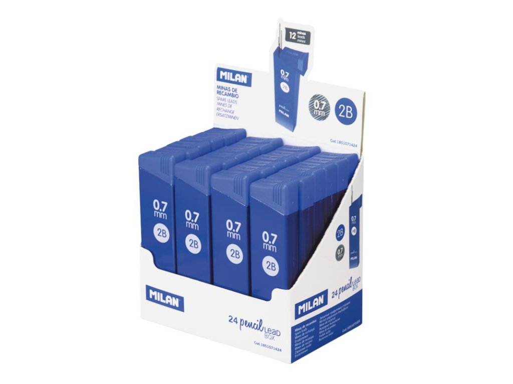 Náplň MILAN do automatické tužky o průměru 0,7 mm, tvrdosti 2B. Dodáváno v praktickém pouzdře s výsuvným otevíráním, ve kterém je možné tuhy bezpečně uchovávat. Balení obsahuje 12 kusů.Doplňkové parametry