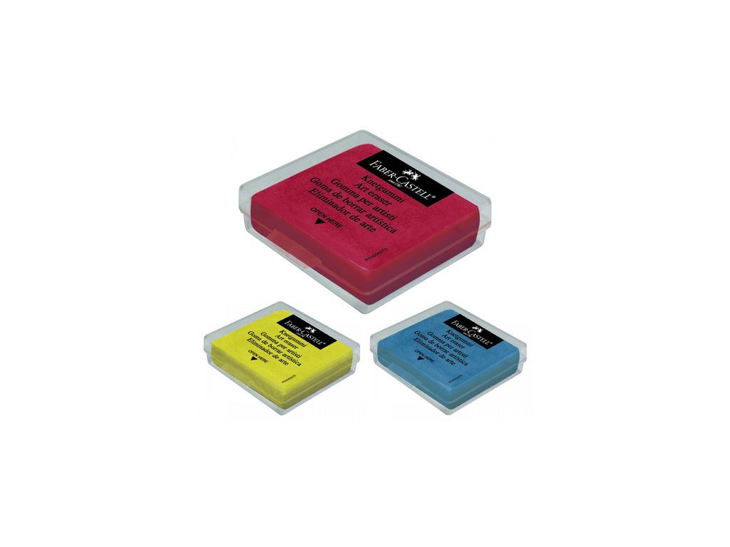 Umělecká, plastická guma barevná. Slouží ke korekci a zesvětlení výkresů zhotovených měkkou tužkou, uhlem nebo pastelem. Je vhodná i na čištění fotografických filmů. Každá guma je dodávána v samostatné plastové krabičce.Doplňkové parametry