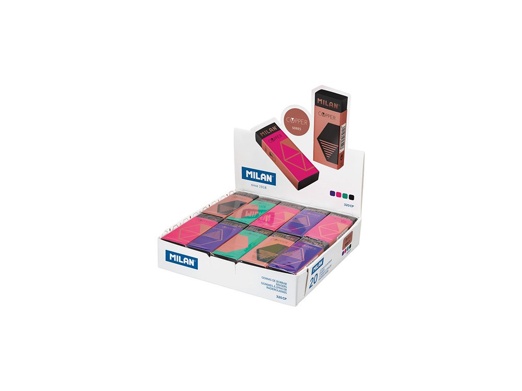 Čierna guma z medenej série nata®. Všestranná, mäkká, neabrazívna plastová guma. Na vymazanie ceruzky na všetkých typoch povrchov. S rôznymi farbami Medený kartónový obal: čierna, zelená, ružová a fialová. Jednotlivo zabalené. Veľkosť gumy: 6,1 x 2,3 x 1,2 cm.Doplňkové parametry